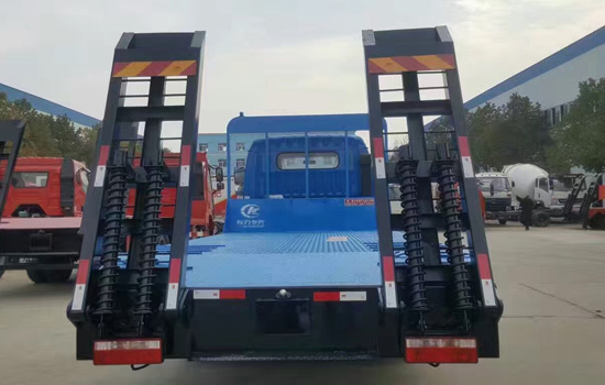 上裝配置:平板底板橫梁采用100*100*5mm方管,底板采用5mm或8mm花紋板,帶加密斜支撐,爬梯采用雙彈簧加強型設計,采用三道筋+雙彈簧加固焊接,可選裝液壓爬梯或折疊加長型液壓爬梯,斜坡處帶后支腿,平板有效板長6.6米(含斜坡),板寬2.5米,可以選擇貨箱帶欄板設計,15噸及15噸以下噸位挖機首選車型!